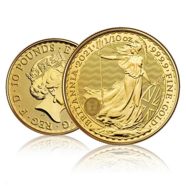 The 2021 1/10 oz Gold Britannia from The Royal Mint is a prestigious modern bullion coin celebrating Britain’s iconic national symbol, Britannia, alongside the final portrait series of Queen Elizabeth II. Struck in 999.9 fine gold, it represents a blend of exceptional purity, advanced minting technology, and globally recognised investment value.