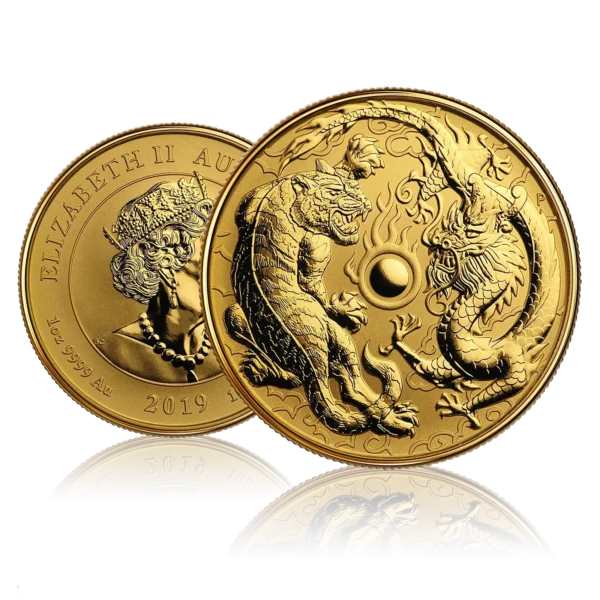 Discover the 1 oz Gold Dragon & Tiger (2019), a highly sought-after bullion coin issued by The Perth Mint in 99.99% pure gold. This release is part of a limited mintage series that blends Chinese mythology with investment-grade bullion quality.