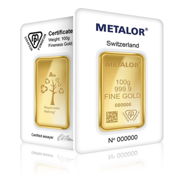 Discover the 100g Metalor Investment Gold Bar, struck in 999.9 fine gold (24-carat) by Metalor, one of Switzerland’s most prestigious LBMA-accredited precious metal refiners. With a heritage dating back to 1852, Metalor is globally recognised for its exceptional quality and precision in bullion production.