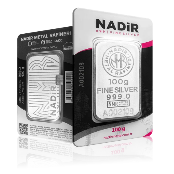 Discover the 100g Nadir Investment Silver Bar (999.9), crafted in 999.9 fine silver by Nadir Metal Rafineri, a globally recognised precious metals refinery known for high-quality bullion products.