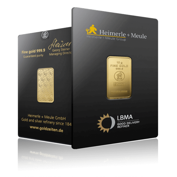Discover the 10g Heimerle + Meule Gold Investment Bar, struck in 999.9 fine gold (24-carat) by Heimerle + Meule, one of Europe’s oldest and most respected precious metal refiners. Known for its long-standing heritage and precision craftsmanship, this bar offers both quality and reliability.
