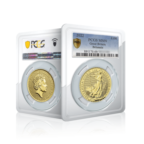 The 1 Oz Gold Great Britain Britannia (2022) is a premium graded bullion coin, produced by The Royal Mint and struck in 999.9 fine gold (24-carat). This modern Britannia release combines advanced security features with one of the most iconic designs in British coinage.