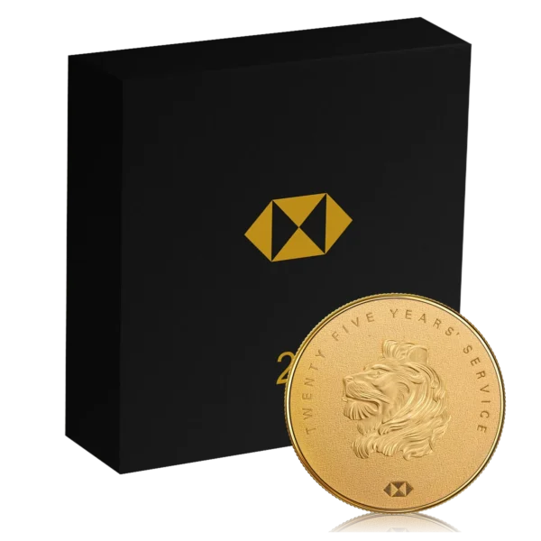 Obverse Design: Features HSBC branding alongside commemorative “25 Years” motifs, symbolising corporate achievement, longevity, and global banking heritage.