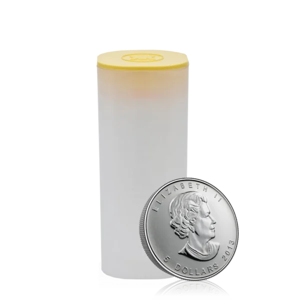 The 1 Oz Silver Canadian Maple Leaf Tube of 25 (2013) is a premium bullion set, produced by the Royal Canadian Mint and struck in 999.9 fine silver. Known for its exceptional purity and global recognition, the Maple Leaf is one of the most trusted silver coins in the world.
