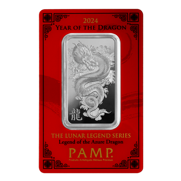 Combining cultural significance, trusted Swiss minting, and investment-grade silver, the PAMP Lunar Legends Azure Dragon Bar is a distinctive addition to any precious metals collection.