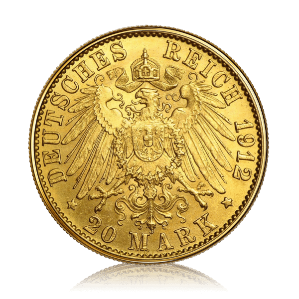 The 20 Mark German Gold Coin is a historic gold issue minted during the era of the German Empire between 1871 and 1915. Struck in 90% gold, these coins feature imperial designs and portraits of German Kaisers, making them highly significant both as historical currency and as collectible bullion with strong numismatic demand.
