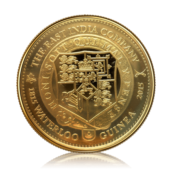 The 2015 Waterloo Guinea Gold Proof Coin is a limited-edition commemorative release struck to mark the 200th anniversary of the Battle of Waterloo. Issued for St. Helena and produced by The East India Company, this coin is struck in 22-carat gold to a flawless proof standard, combining historical significance with exceptional modern minting craftsmanship.
