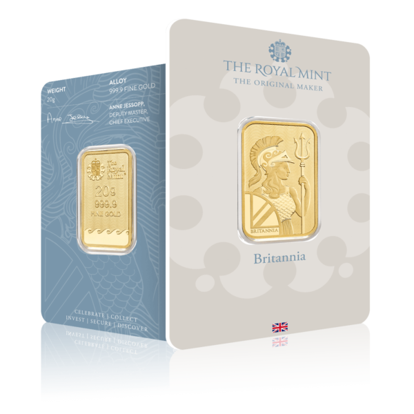 Discover the 20g Royal Mint Britannia Gold Bar, struck in 999.9 fine gold (24-carat) by The Royal Mint, a globally respected and historic government-backed refinery. This bar combines investment-grade gold with one of the most iconic symbols in British bullion.