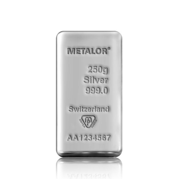 Containing 250 grams of pure silver, this bar offers a balanced combination of value and manageability, making it suitable for both portfolio diversification and long-term holding. Its size provides a practical step between smaller bars and larger kilo investments.