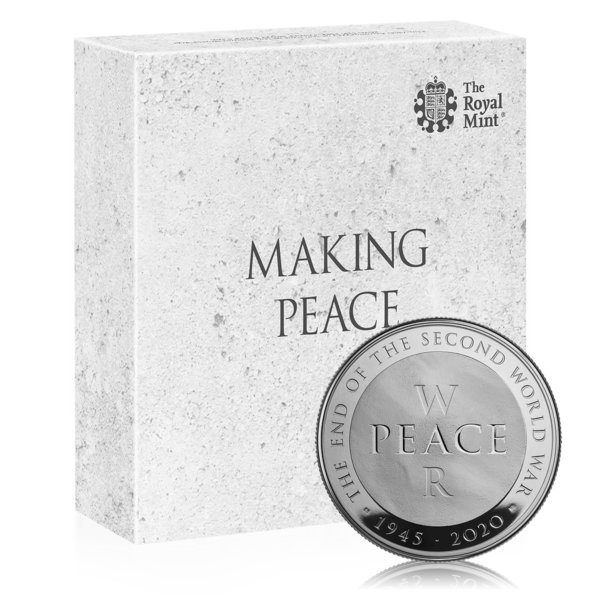 The 5 Oz Silver Proof – 75th Anniversary of the End of World War II (2020) is a prestigious commemorative coin, produced by The Royal Mint and struck in 999.9 fine silver. This release honours the historic moment marking the end of World War II and celebrates peace and remembrance.