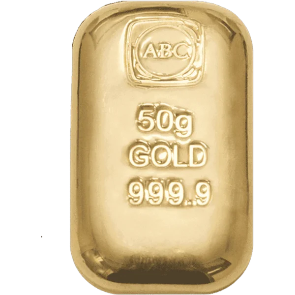 Containing 50 grams of pure gold, this bar provides substantial intrinsic value while remaining highly liquid in global bullion markets. Its simple and traditional cast finish appeals to investors focused on value and weight rather than intricate design.