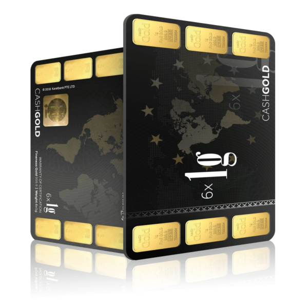 Dimensions: Multigram gold bar card – sealed in tamper-proof credit card-style packaging with assay certification