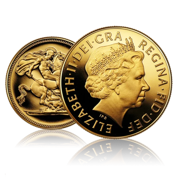 The obverse features the Ian Rank-Broadley effigy of Queen Elizabeth II, while the reverse showcases the iconic St George and the Dragon design by Benedetto Pistrucci, one of the most celebrated motifs in British coinage.
