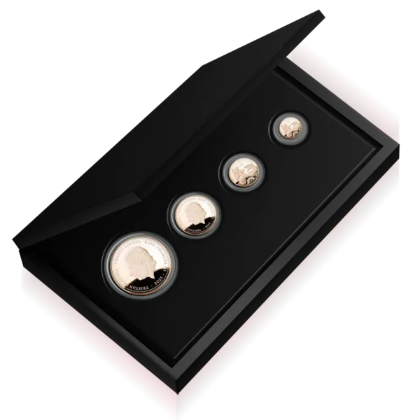 Dimensions: Multi-coin sovereign set (Full, Half, Quarter, One-Eighth) | Presented in deluxe display box