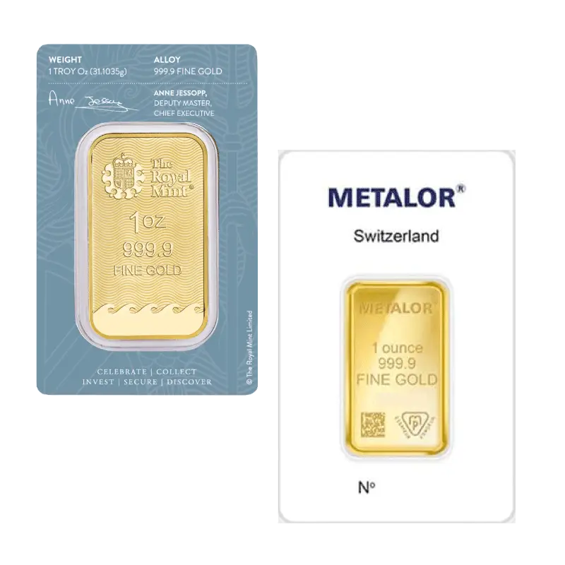 1oz Gold Bars – Royal Mint or Metalor